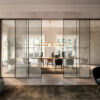 Porte in vetro scorrevoli, porte in vetro a battente, pareti divisorie in vetro, porte decorate per suddividere con leggerezza cucina, soggiorno, corridoi, bagni e uffici. Il vetro, con i suoi giochi di luce e le sue trasparenze, amplia lo spazio, lo dilata, lo valorizza, separa gli ambienti unendoli con la luce.