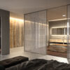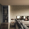 Cambia con il cambiare della luce, trasformando l’ambiente con i suoi riflessi luminosi e combinandosi con forme, colori e materiali.